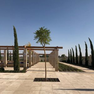 Auf 32 ha sind von Daber&Kriege GmbH Grünflächen in der Art einer Baum-Savanne vorgesehen. Als Leitbäume werden Pinien, Zypressen, Baumoleander und großblütige Magnolien, orientalische Platanen, Jacaranda und Gleditsien gewählt. In Straßen begleitenden Alleen – teils schon gepflanzt – dominiert die Pinie. Für Check Points, Eingangsbereiche und Parkplätze, sowie ein Amphitheater ist eine differenzierte Begrünung vorgesehen. Doch gegenwärtig herrscht – wie schon mehrmals in den vergangenen Jahren, aus politischen Gründen, ein Baustopp.