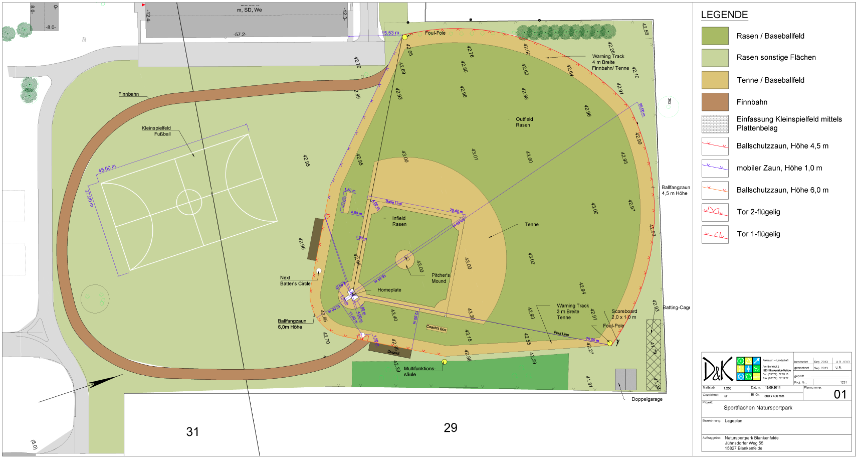 Der Natursportpark Blankenfelde beauftragte uns mit weiteren Leistungen zur Errichtung eines Baseballspielfeldes auf dem Vereinsgelände. Nachdem wir die Entwurfsplanung erstellt haben und die notwendigen Fördermittel auf Basis unserer Planung generiert werden konnten. geht es jetzt an die Umsetzung des Vorhabens. Wir erstellen dazu die Ausführungsplanung, die Leistungsbeschreibung und führen die Bauüberwachung durch.