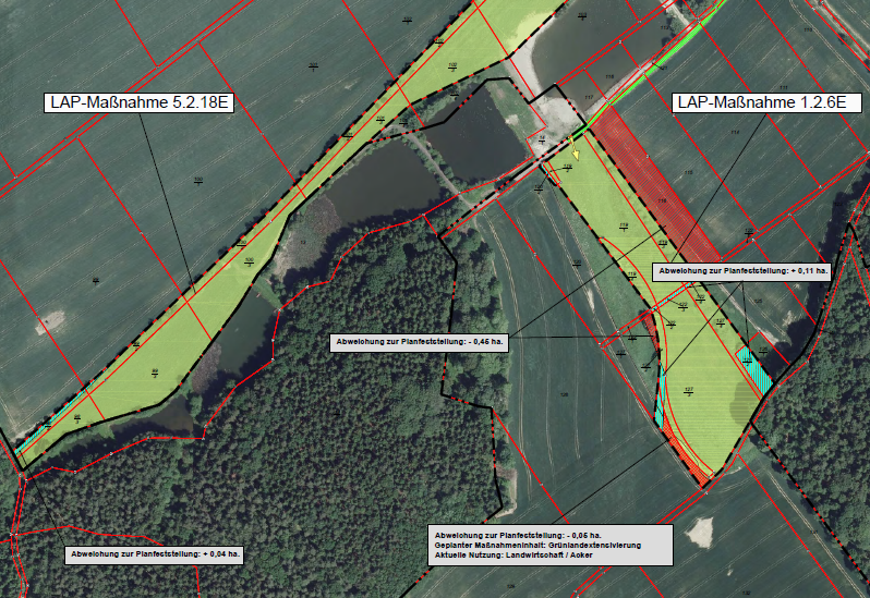Im Zusammenhang mit der Dokumentation der Umsetzung von Kompensationsmaßnahmen untersützen wir Sie als Vorhabensträger bei der Erfassung aller relevanten Daten über die verschiedenen Planungsebenen hinweg. Beginnend mit der Genehmigungsplanung über die Ausführungsplanung bis hin zum Abschluss der baulichen Umsetzung geben wir die entsprechenden fachlichen Daten sowie Daten zum Grunderwerb sowie zur Unterhaltung der Maßnahmen in die zur Verfügung stehenden Kompensationsflächenkataster bzw. Kompensationsverzeichnisse ein. Ergänzend können wir auf dieser Grundlage den Abgleich zwischen dem Planungs-Soll aus der Genehmigungsphase und dem Bestands-Ist nach baulicher Ausführung aufzeigen und Vorschläge zum Umgang mit Abweichungen erarbeiten.