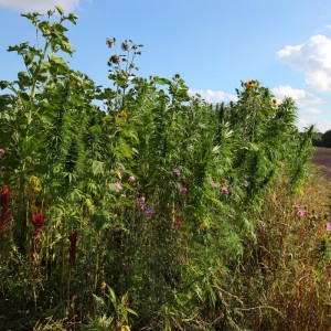 Die Niedersächsische Erzeugergemeinschaft für nachwachsende Rohstoffe e.V. (EZG) hat im Landkreis Gifhorn zusammen mit Fachleuten vom Institut für angewandtes Stoffstrommanagement (IfaS) der Hochschule Trier sowie Vertretern der Niedersächsichen Landesbehörde für Straßenbau und Verkehr und der Unteren Naturschutzbehörde des Landkreises Gifhorn ein Modellprojekt im Umfeld von Lüben auf den Weg gebracht, einem Dorf in der Gemeinde Wittingen. Auf insgesamt 16 ha Fläche werden von fünf landwirtschaftlichen Betrieben seit diesem Jahr spezielle Wildkrautgemenge angebaut, die auf der einen Seite hochproduktiv sind und in einer Biogasanlage in Wittingen Verwendung finden werden, auf der anderen Seite funktional als Ausgleichs- und Ersatzmaßnahmen dienen könnten.
