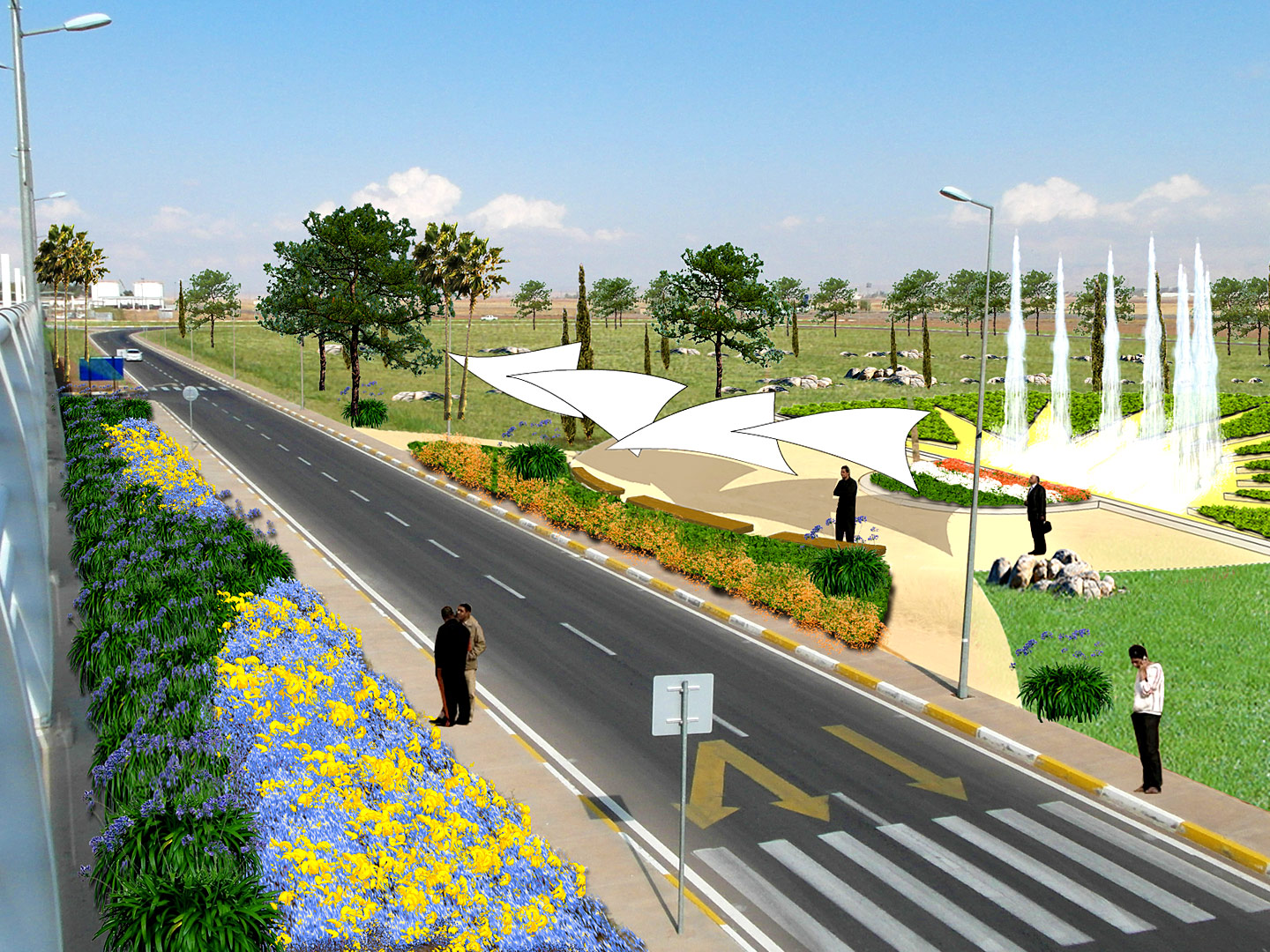 - die Begrünung der Hauptstraße zum Terminal