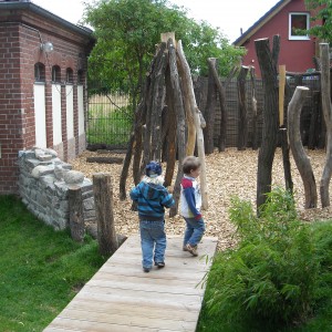 Neben der Verwendung von natürlichen Materialien kommt der sinnlichen Erfahrungswelt, des Entdeckens auf kleinem Raum und der Unterstützung der motorischen Fähigkeiten eine wichtige Bedeutung zu. Neugierde und Fantasie werden angeregt, Natur entdeckt und erobert.