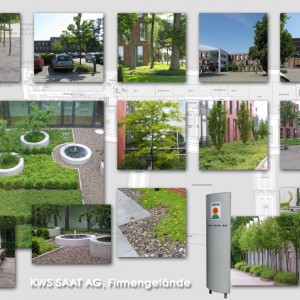 Für die Außenanlagen entwickelten wir in Zusammenarbeit mit dem Hochbauarchitekten ein CI (Corporate Identity), dass dem repräsentativen Verständnis der KWS Rechnung trägt. Dieses umfasst neben den abgestuften Gestaltungsintensitäten in Abhängigkeit der Bedeutung der Gebäude die regelmäßige Verwendung der Säulenhainbuche als einziger Großbaum auf dem Gelände.