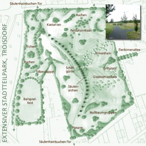 | Kurzbeschreibung | Freiraumplanung des Ökologischen Stadtpark – Kleingartensiedlung – verkehrsberuhigenden Maßnahmen der Stadt Troisdorf |