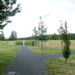 Höhenunterschiede von bis zum 4 m verleihen dem Bereich eine spannende Geländemodellierung, die dem Betrachter einen weitläufigeren Raum suggeriert, als die 6 ha tatsächlich bieten können. Für den Sportbegeisterten stehen im westlichen Teil durch Hecken und Baumreihen abgegrenzte Räume als Wiesenspielflächen zur Verfügung.