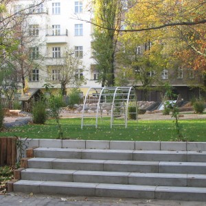 Die typische Quartierslage des Nikodemus-Kindergarten bietet eine Oase der Ruhe für viele Kinder unterschiedlicher Nationen. Die Außenanlagen waren jedoch durch intensive Benutzung in einem desolaten Zustand.