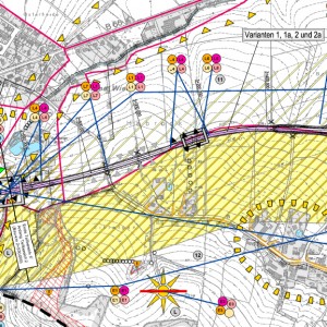 Für die Variantenprüfung wurden drei Hauptvarianten sowie weitere drei Untervarianten für Teilabschnitte hinsichtlich ihrer zu erwartenden Auswirkungen auf die Schutzgüter untereinander verglichen.